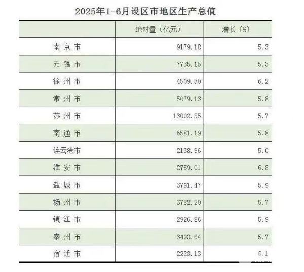 日前,江苏省统计局发布了2025年上半年全省 13 个设区市的地域出产总值数据。数据显示,有5个市P 跨越 5000 亿元,7个市的增速高于全省 5。7% 的平均增速。各地正在成长中,既巩固本身的财产劣势,又紧盯短板努力逃逐,呈现出你逃我赶的优良成长态势。